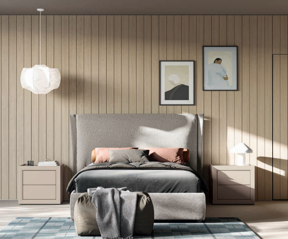 letto, gruppo comodini, armadi con anta battente