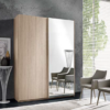 Armadio in melaminico composto da 2 ante scorrevoli di cui una a specchio. All’interno è dotato di 2 ripiani e 4 appendi abiti. Questo armadio è dotato di chiusure rallentate.