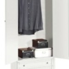 con profondità ridotta, con 2 cassetti esterni ed un appendi abiti interno. Costruito con legno di pioppo.