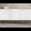 Base dalle linee moderne con 2 ante e 3 cassetti. Struttura e piedini color legno naturale. Ante e cassetti color bianco con venature naturali del legno. Un pezzo di arredo molto utile sia per riporvi oggetti di vario genere all’interno, sia per utilizzare come base per televisore. Disponibile in varie finiture come da foto: Abete bianco spazzolato, Abete spazzolato bianco con struttura color legno, Abete spazzolato con struttura , ante e cassetti color legno.