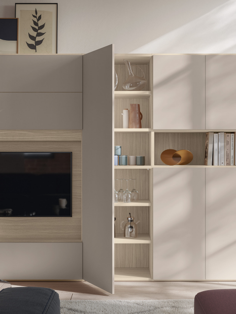 Parete attrezzata moderna e componibile dal design lineare ed elegante, con Libreria Infinity a terra in controspinta profondità e vano TV integrato. Una soluzione d’arredo versatile e funzionale, pensata per organizzare lo spazio con armonia: dalla zona libreria dedicata ai libri e agli oggetti decorativi, all’area multimediale studiata per garantire ordine e praticità. Le finiture nei toni caldi della terra donano un’atmosfera accogliente e raffinata, trasformando il living in un ambiente contemporaneo, ricco di stile e comfort
