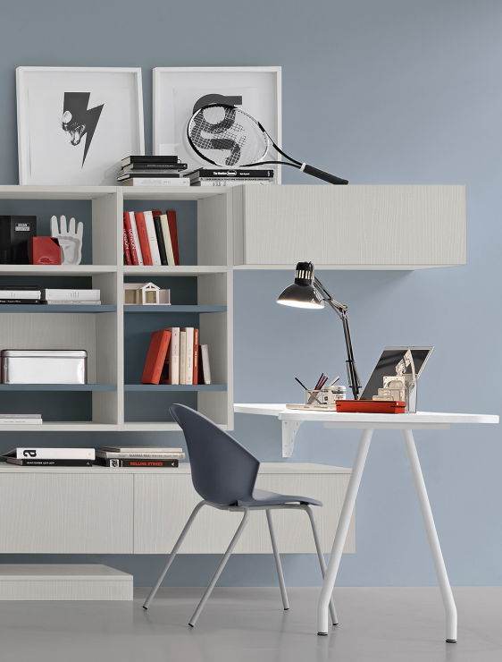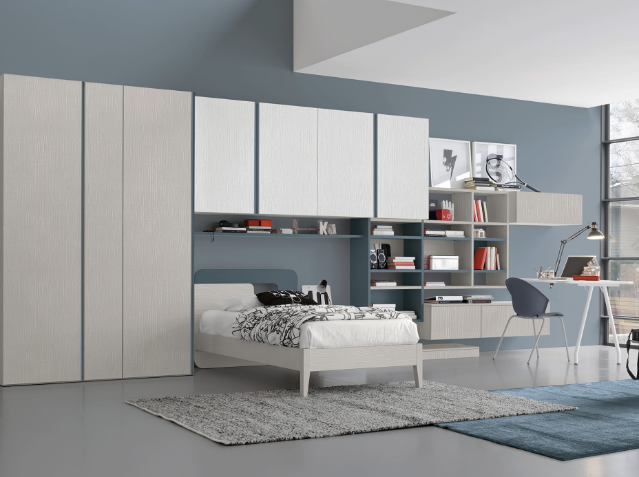La vera differenza è nella componibilità: moduli intelligenti, soluzioni salvaspazio, possibilità di personalizzare e riorganizzare l’ambiente quando serve. Una camera moderna, pratica e con carattere, progettata per non restare mai uguale e per accompagnare i ragazzi nei loro cambiamenti.