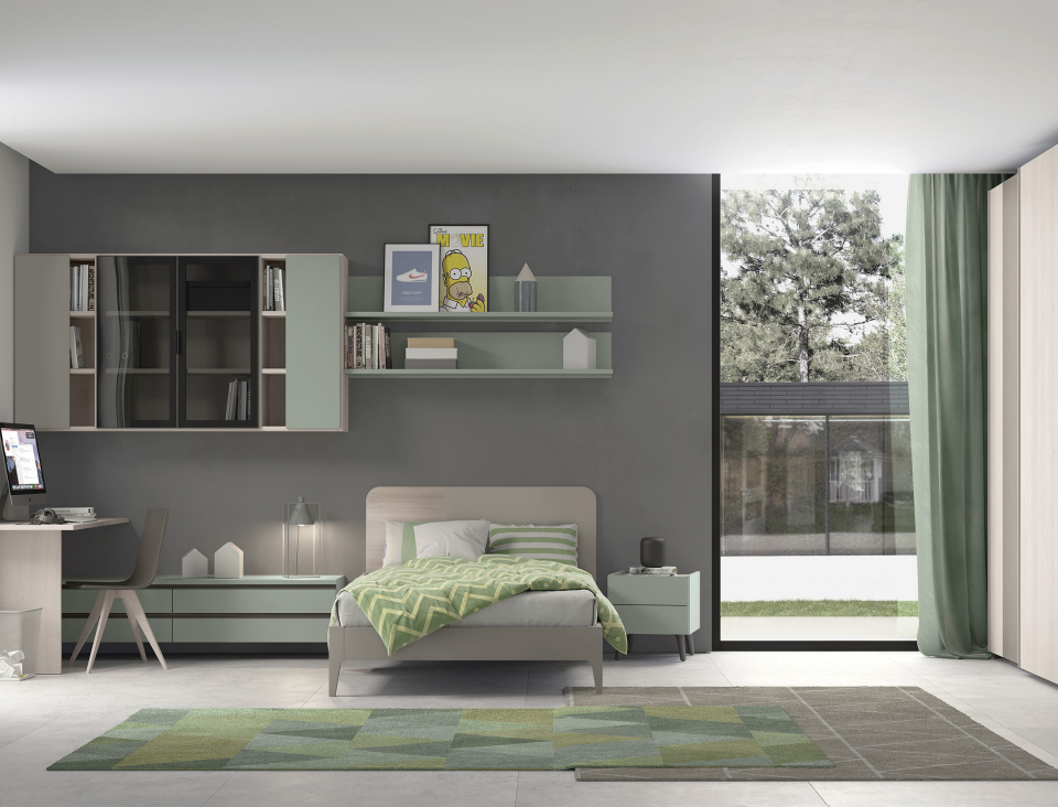 La vera forza? La componibilità: la camera si adatta allo spazio e cresce insieme ai ragazzi, trasformandosi in base alle loro esigenze. Design moderno, soluzioni salvaspazio intelligenti e un tocco di stile giovane rendono questo ambiente pratico, dinamico e sempre al passo coi tempi.