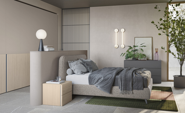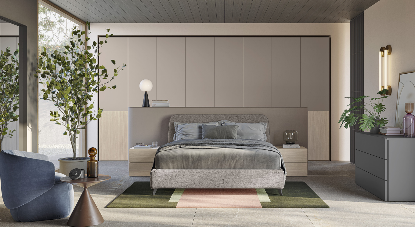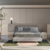 Camera da letto moderna dal design essenziale: linee pulite, arredi minimal e una palette neutra creano un ambiente armonioso e contemporaneo, perfetto per chi ama l’eleganza senza eccessi.