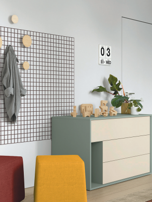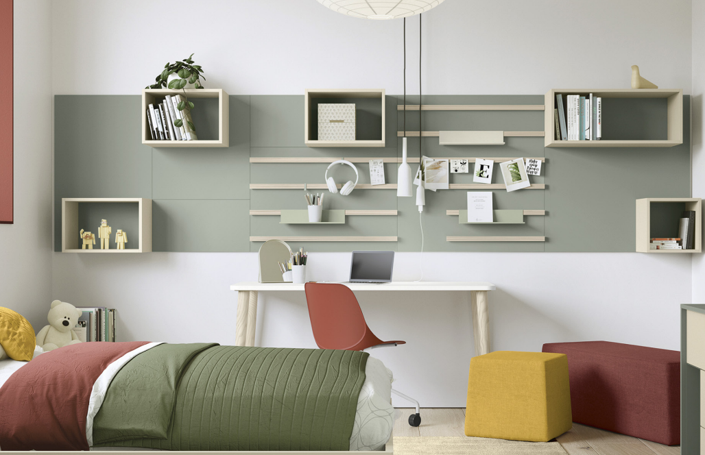 Cameretta componibile dal design moderno e accattivante, perfetta per i ragazzi che vogliono uno spazio tutto loro, funzionale e pieno di stile. Linee pulite, colori attuali e soluzioni su misura per studiare, rilassarsi e crescere con personalità .