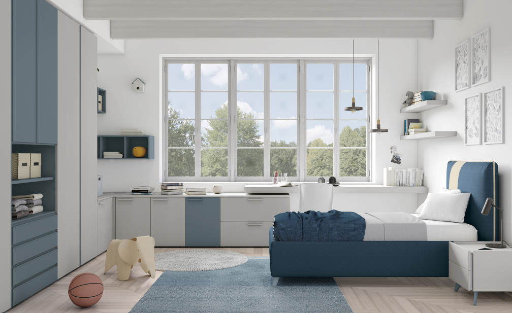 Cameretta per ragazzi bella e confortevole: un ambiente curato nei dettagli, pensato per offrire il massimo comfort tra studio, relax e momenti di creatività.
