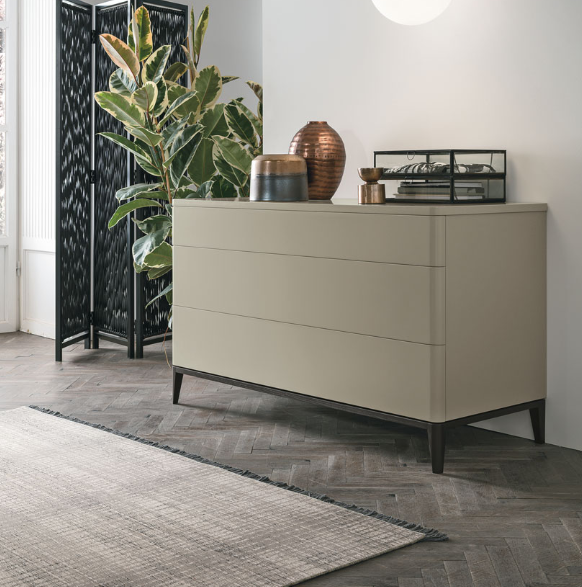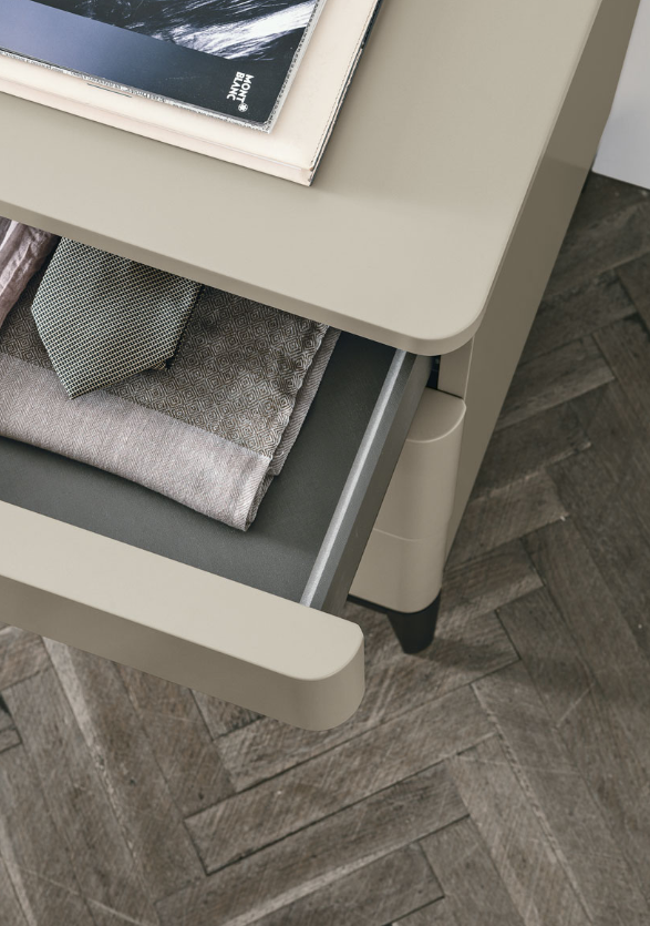 Gli angoli arrotondati e i piedini portano un tocco di dolcezza nella vita di tutti i giorni, anzi di tutte le notti. Un gruppo di arredi perfetto per arredare ambienti eleganti, dall’allure classico.