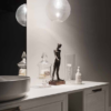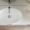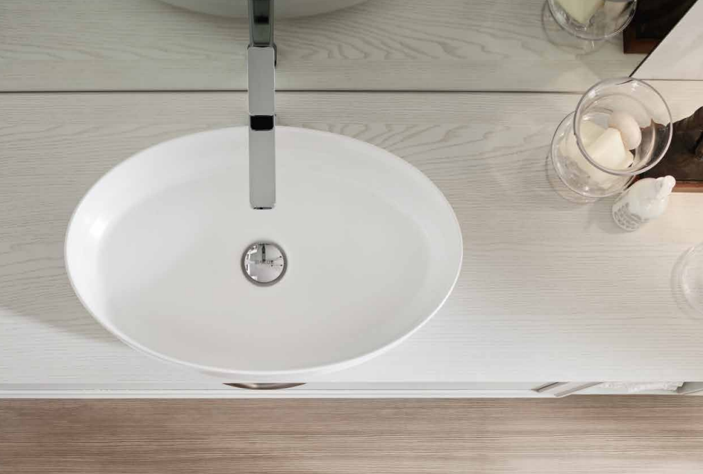 Il modulo a giorno, il lavabo in appoggio e lo specchio
