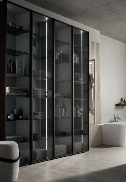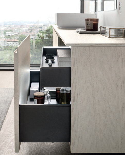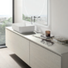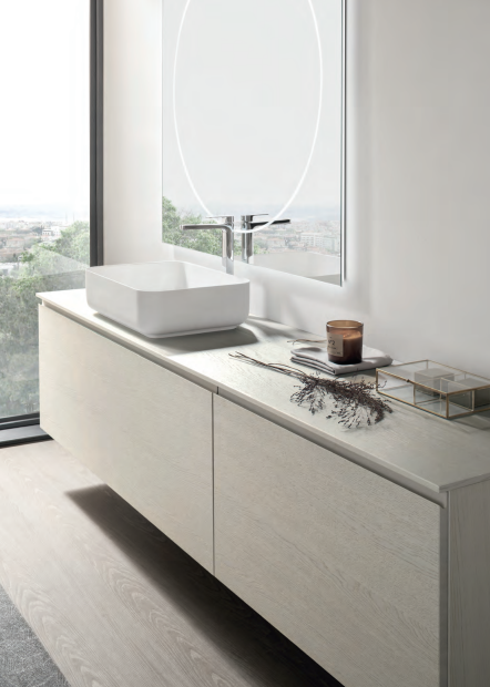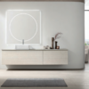 Composizione bagno moderna dal design lineare, caratterizzata da superfici pulite e geometrie essenziali che valorizzano la luminosità dello spazio. I toni chiari creano un’atmosfera fresca e ariosa, mentre la disposizione razionale degli elementi assicura funzionalità e comfort quotidiano. Finiture curate e materiali di qualità completano un ambiente contemporaneo, elegante e ordinato.