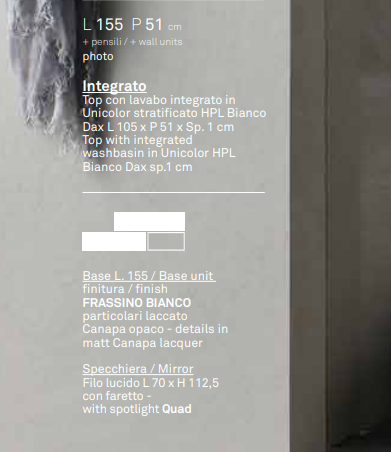Composizione bagno moderna lineare: eleganza e funzionalità si incontrano in un design essenziale. Linee pulite, materiali di qualità e finiture minimal creano un ambiente raffinato e contemporaneo, perfetto per valorizzare qualsiasi spazio bagno.