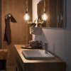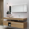 Composizione bagno lineare che unisce la matericità del legno ai contrasti del bianco e alle note fresche del verde. L’apertura a gola definisce un’estetica sobria e contemporanea, pensata per valorizzare lo spazio con eleganza e funzionalità.