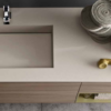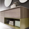 L’elemento a giorno si inserisce nel mobile: apre l’angolo, crea un nuovo spazio e aggiunge un tocco di colore all’olmo.