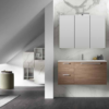 Bagno in toni chiari e legno con linee sinuose: forme morbide e fluide che armonizzano lo spazio, superfici luminose che amplificano la luce e dettagli in legno che donano calore e naturalezza. Un ambiente elegante e contemporaneo, dove design e comfort si fondono in un’atmosfera accogliente e raffinata