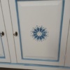 in legno di pioppo o toulipier con parti in mdf e impiallacciate tinto bianco opaco, con intagli e decori fatti a mano.