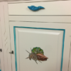 in legno di pioppo tinto bianco opaco con bassorilievi fatti a mano con soggetti marini.
