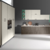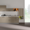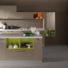 330+120+150 cm finitura tortora con elementi a giorno arancio e verde acido.