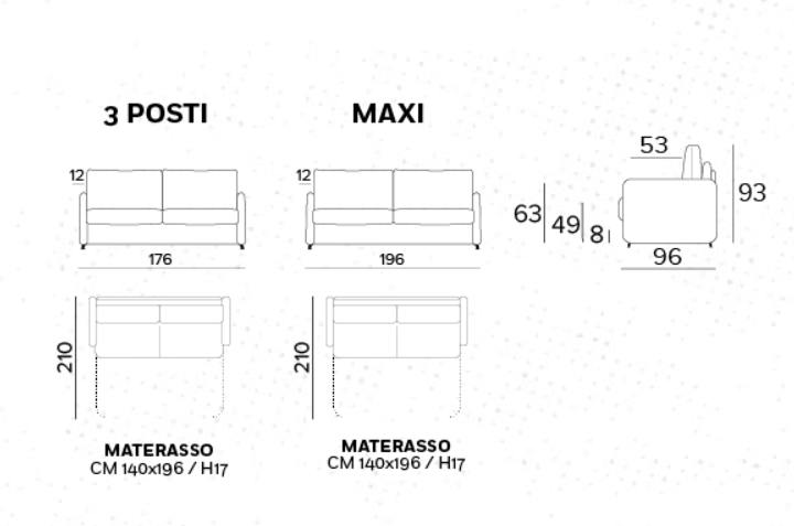 DIMENSIONI DIVANO LETTO: L176 P96 H93