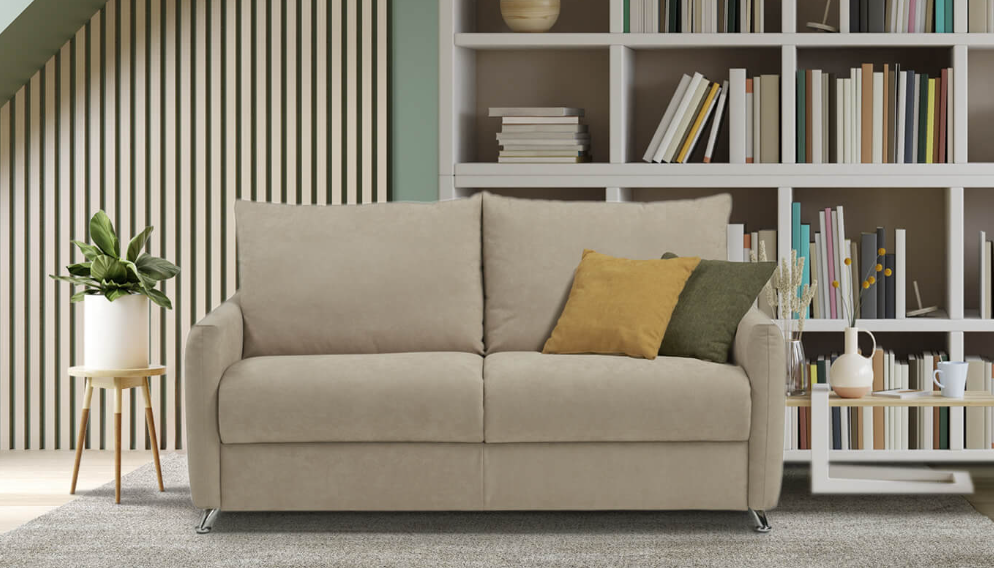 Se il relax è un aspetto della vita per cui anche l’occhio vuole la sua parte, Jerry è il divano perfetto per riconoscere il comfort prima ancora di essercisi seduti sopra.  Il suo schienale morbido in fibra poggia su una seduta invitante e comoda da cui ci si alzerà solo perché il mondo ci porta fuori di casa. Sempre che riusciate a ritrasformarlo in divano dopo aver provato la sua testata quando è in versione letto.