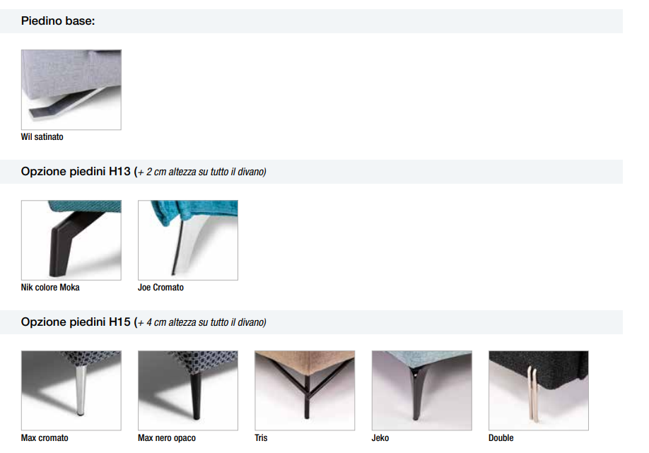 Materiali di rivestimento: Tutti i tessuti e le varianti disponibili a Campionario