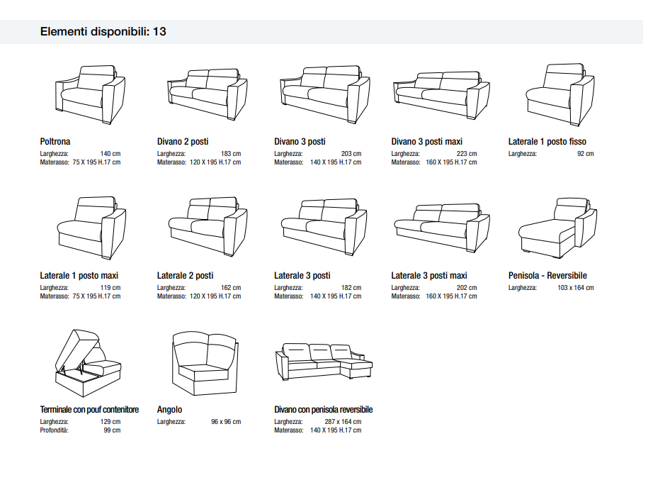 Disponibile in molteplici varianti, dalla poltrona al 3 posti maxi, versione fissa o letto