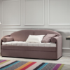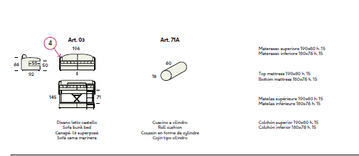 Linee classiche, sdrammatizzate dai cuscini tondi. Beta porta con sé un letto in più, ma senza nessun ingombro grazie al meccanismo a castello.