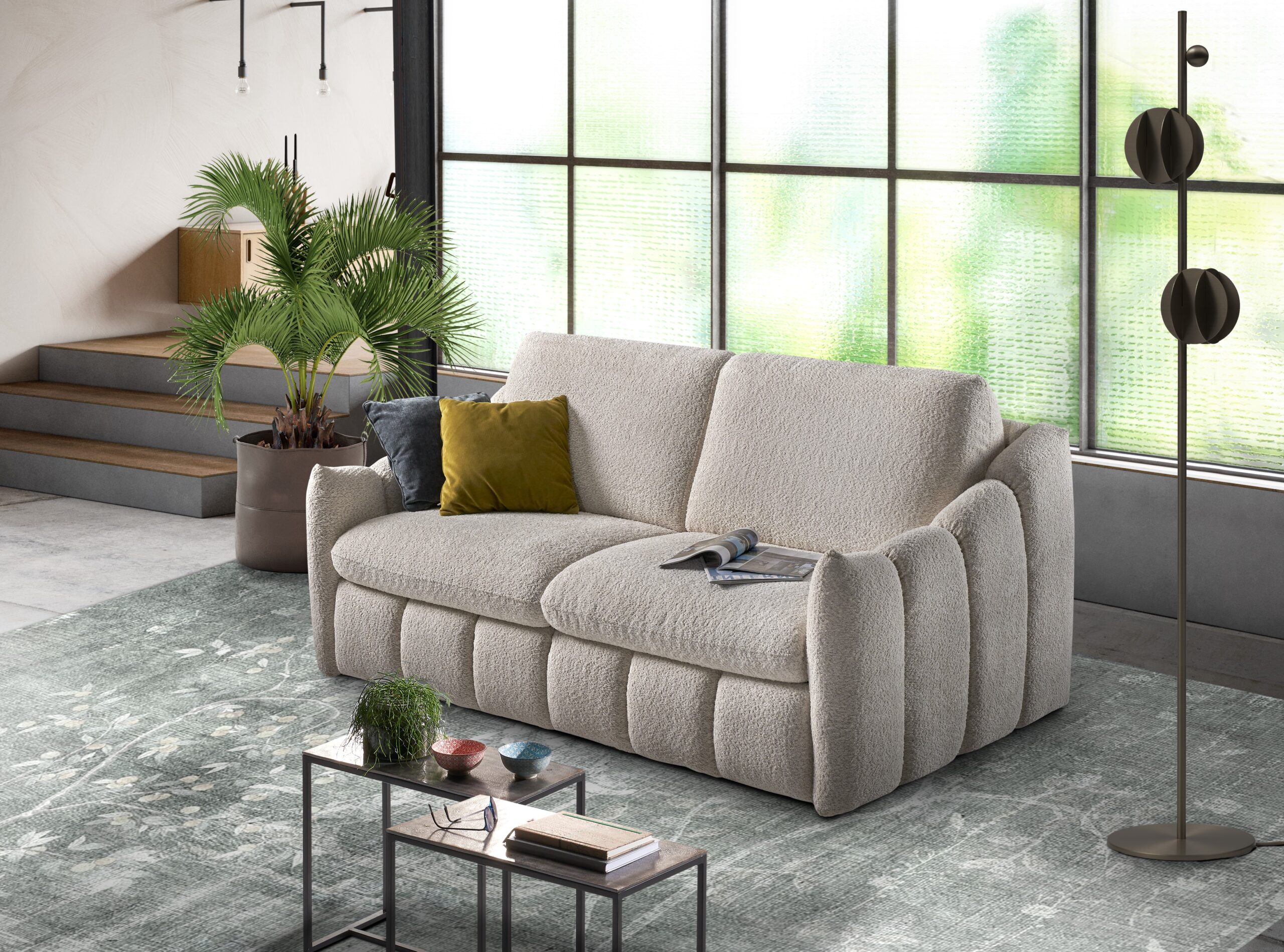 Un divano-letto moderno e dalle linee inconfondibili, Bon Bon è il divano letto che più abbraccia uno stile attuale e accattivante senza rinunciare alla comodità . I suoi bracci lavorati con cuciture verticali lo rendono un modello unico e di gran classe, dalle forme tondeggianti.
