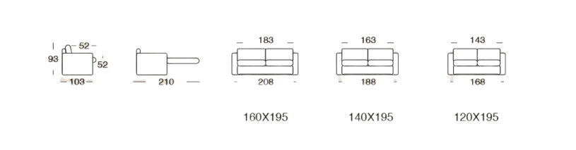 Tre misure per il materasso: 120, 140, e 160 cm.