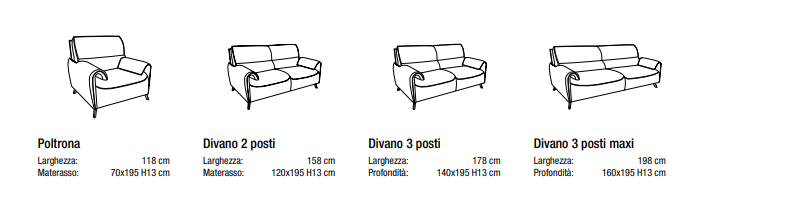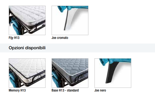 Materiali di rivestimento:Â Tutti i tessuti e le varianti disponibili a Campionario