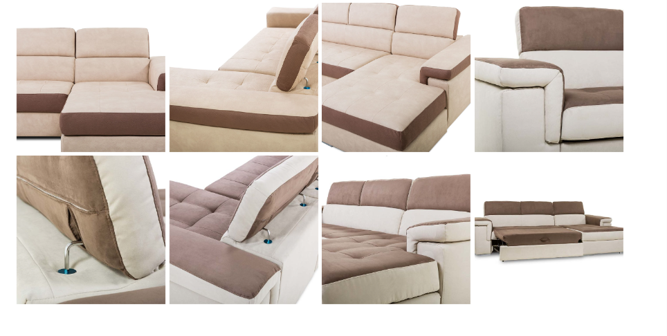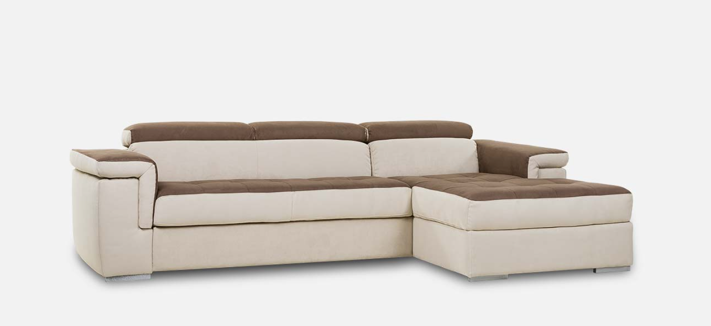 Poggiatesta regolabili e sedute trapuntate offrono un confort superiore in un sofà che può passare da divano relax alla sua funzione letto, grazie alla panchetta estraibile.