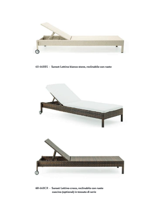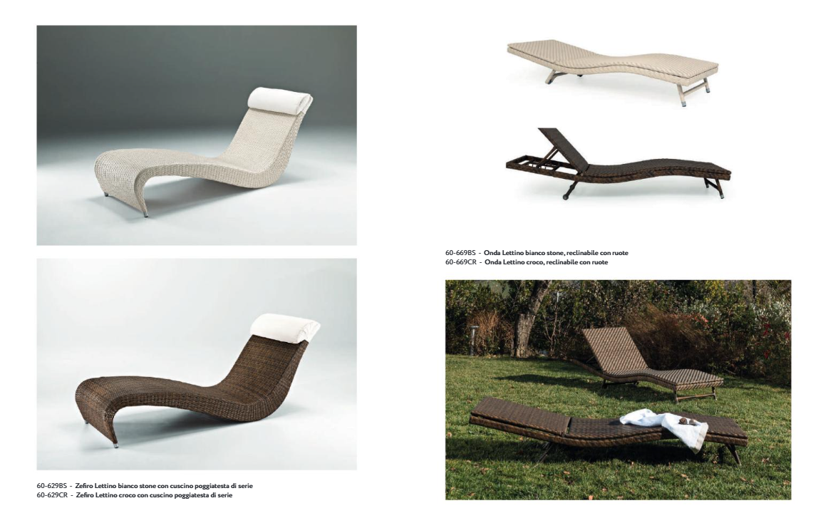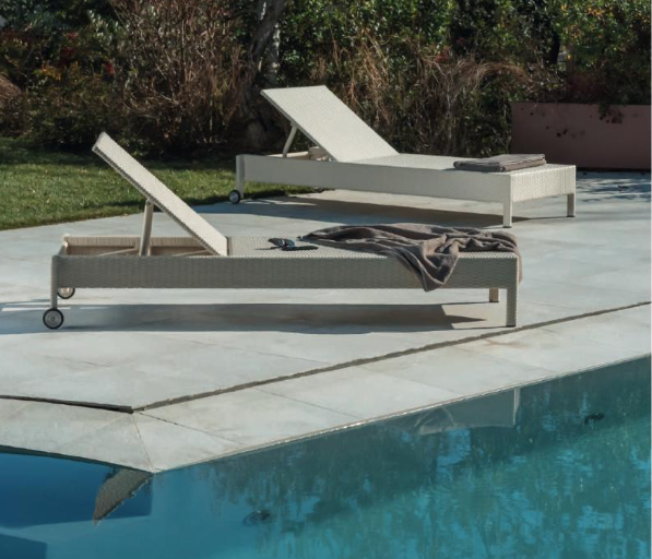 LETTINI CON TELA IN SOLIDO ALLUMINIO E INTRECCI IN FIBRA POLYRATTANDI QUALITA’ SUPERIORE. LE CHAISE-LONGUES PERMETTONO DI GODERE DEGLI SPAZI OUTDOOR SENZA PREOCCUPAZIONI, GRAZIE ALL’ ACCURATASELEZIONE DEI MATERIALI DI PRODUZIONE, RESISTENTI ALLE INTEMPERIEE PROGETTATI PER DURARE NEL TEMPO. A BORDO PISCINA, IN TERRAZZA O IN GIARDINO: OVUNQUE CI SIA VOGLIA DI GODERSI MOMENTI DI RELAX SOTTO IL SOLE.