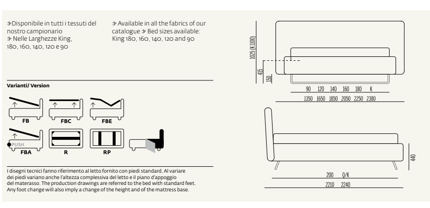 Il prezzo si riferisce al Letto Doxy Wide, Folding box misura King rete 160×190, CAT Tessuto B .