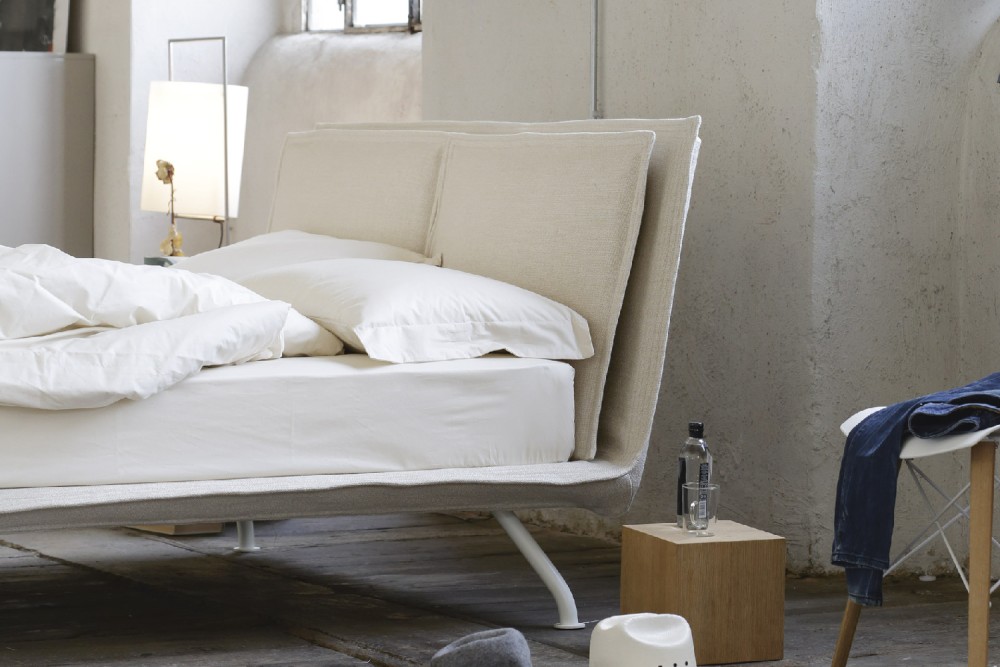 Proporzioni armoniose che creano un design quasi sospeso nel tempo e nello spazio: il letto Kenny è caratterizzato da due cuscinotti realizzati in memory foam, un materiale solitamente utilizzato per i materassi che ora viene introdotto anche nelle testate tessili per maggior comfort e sensazioni di relax.