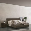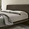 La testiera leggermente curvata e appoggiata a terra è l’elemento distintivo del letto Prado. La notte è soft nella forma e nella tonalità. Disponibile anche con contenitore imbottito.