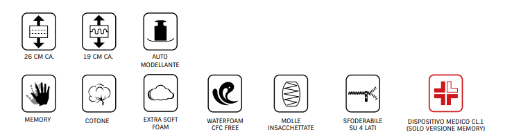 è in grado di adattarsi perfettamente ad ogni parte del corpo, donando un sostegno unico. Il materasso è disponibile