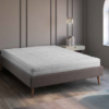 Il letto White Bed 3.0 è rivestito in tessuto a maglia beige composto al 100% da fibre con proprietà anallergiche..