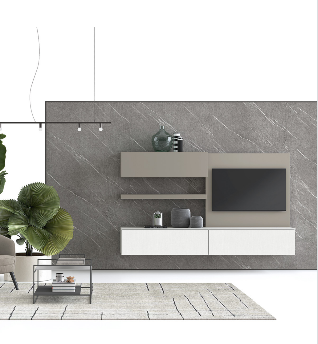 La parete attrezzata nei caldi toni della terra porta nella casa un’atmosfera calda e naturale, dove eleganza e comfort si incontrano. Le sfumature ispirate alla natura donano profondità e carattere agli ambienti, mentre la sua struttura funzionale permette di organizzare libri, oggetti e dispositivi con ordine e praticità . Un arredo versatile che valorizza la zona giorno, combinando stile raffinato e accoglienza