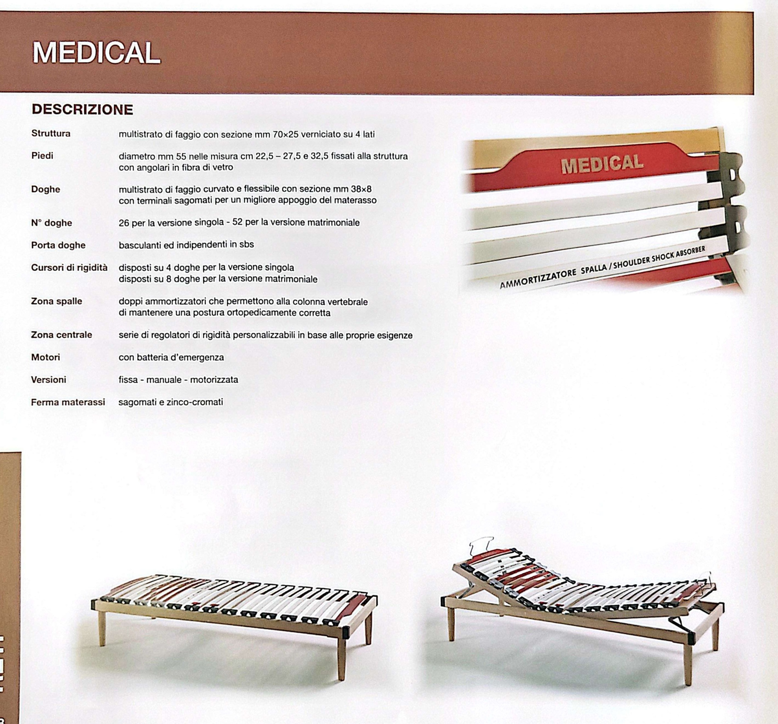MULTISTRATO DI FAGGIO CURVATO E FLESSIBILE CON SEZIONE mm 38 X8 CN TERMINALI SAGOMATI PER UN MIGLIORE APPOGGIO DEL MATERASSO , N° 26 PER LA VERSIONE SINGOLA – 52 PER LA VERSIONE MATRIMONIALE