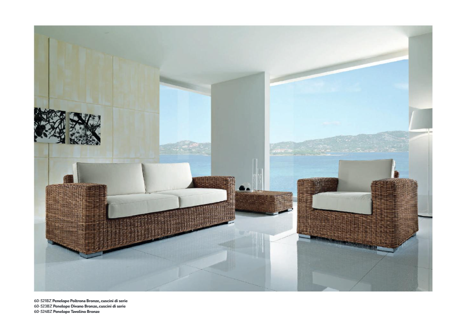 FORMA SQUADRATA , VOLUMI PIENI CONTORNATI DA LINEE DRITTE. LA COLLEZIONE PENELOPE UNISCE DESIGN MINIMALISTA ALLA RICERCATEZZA DELL’ INTRECCIO MANUALE. SUL TELAIO IN ALLUMINIO VIENE ABILMENTE INTRECCIATA A MANO LA FIBRA POLYRATTAN. QUESTO GARANTISCE RESISTENZA SENZA EGUALI AGLI AGENTI ATMOSFERICI E ALLE ESCURSIONI TERMICHE . I CUSCINI COME PER OGNI COLLEZIONE SONO PERSONALIZZABILI PER TESSUTI E FANTASIE.