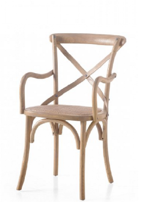 Sedia Patrizia in olmo lucido naturale e seduta in rattan naturale