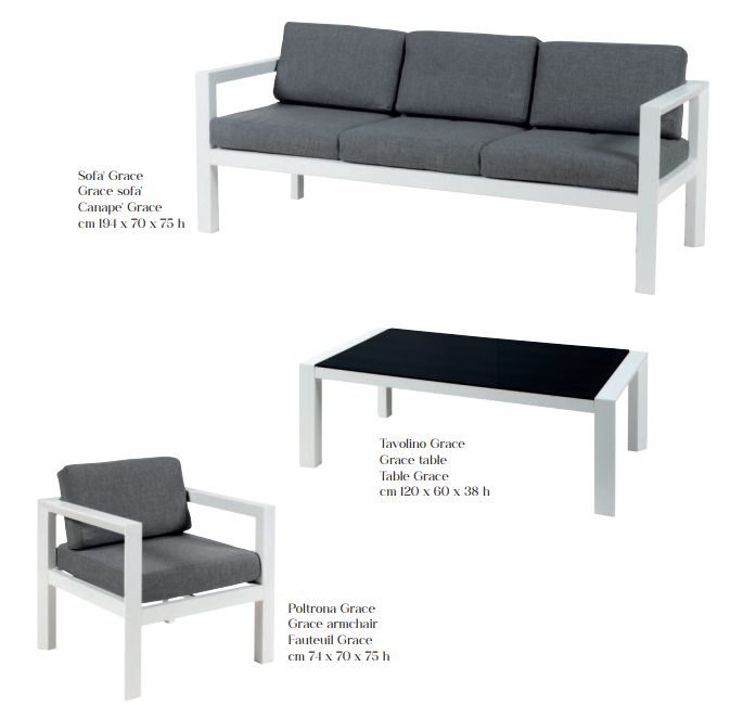 Sofa’ Grace: cm 194 x 70 x 75 h