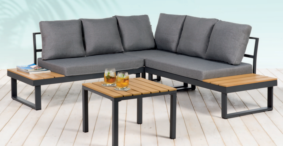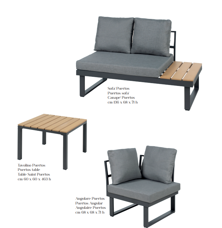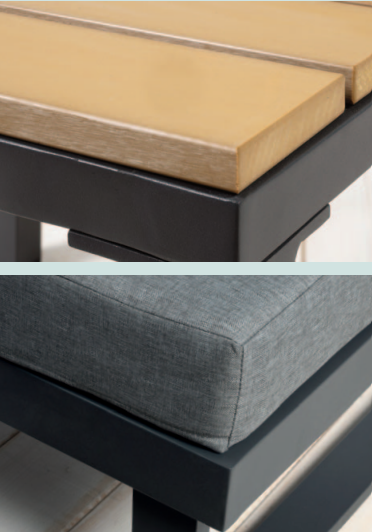 Teak, fibre naturali, fibre sintetiche, polipropilene ed alluminio