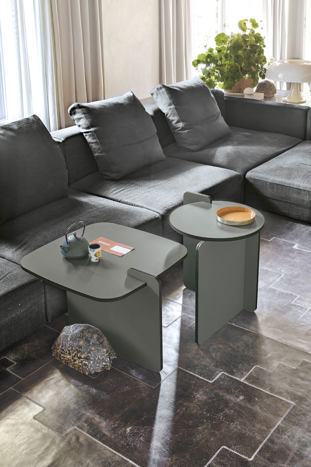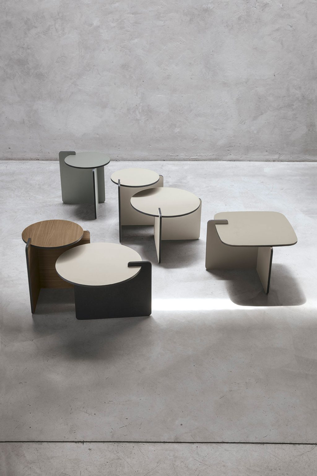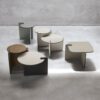 Ogni pezzo di cui si compone il tavolino si incastra perfettamente con gli altri e ogni tavolino, tondo o rettangolare, alto o basso, si abbina agevolmente con altri tavolini. Un arredo versatile, tutto da personalizzare.
