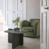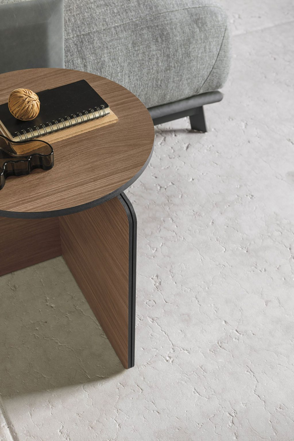 Il design originale del tavolino è il risultato di un incastro perfetto di elementi. La base sporgente sul piano è la dimostrazione di una connessione naturale tra le parti che dà forma a un arredo unico.
