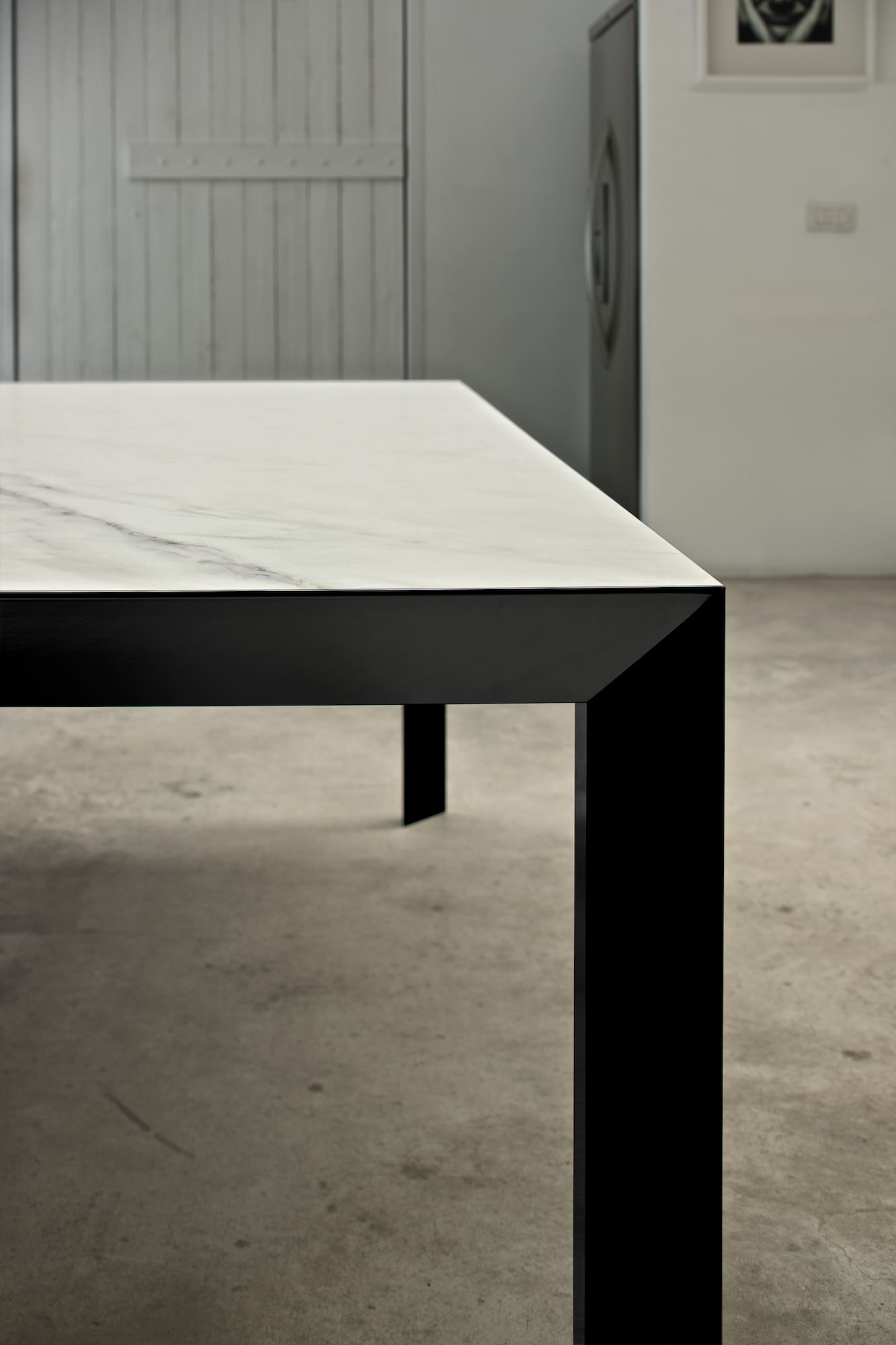 Tavolo allungabile con struttura in Alluminio. Piano in Cristallo, Cristallo Antigraffio, SuperCeramica e SuperMarmo.