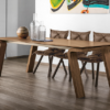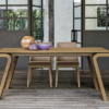 Tavolo allungabile con gambe e piano impiallacciati con legno rovere naturale.