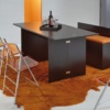 Tavolo Consolle allungabile in nobilitato con panca contenitore.