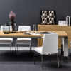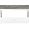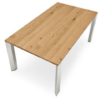 Le gambe in metallo sono disponibili nella finitura spazzolata o cromata, mentre il piano rettangolare è proposto nelle seguenti varianti: