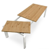 Le gambe rimangono sempre perimetrali, assicurando una comoda seduta a ogni commensale. Il sistema di allunga è montato su telaio con movimento di apertura guidato.