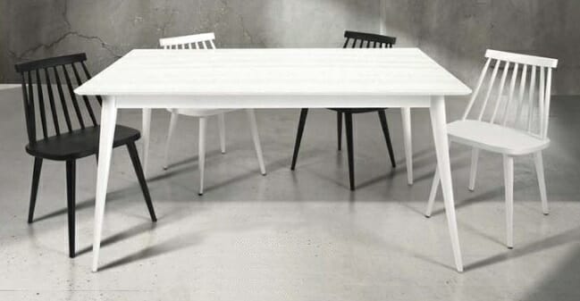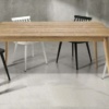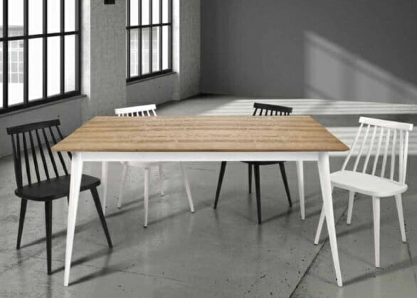 Tavolo dalle linee moderne con piano in abete spazzolato allungabile. Un materiale naturale che donerà calore al vostro ambiente. Dispone di una allunga da 50 cm, per disporlo nelle sua massima estensione.Disponibile in diverse colorazioni e differenti dimensioni, finitura naturale su struttura e piano, finitura bianca con venature e con struttura bianca e ripiano color legno naturale