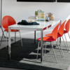 Tavolo allungabile in metallo e vetro, ideale per arredare cucina o living.